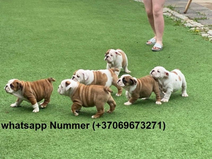 Englische Bulldoggen Welpen 10 Wochen alt .Mit Mikrochip . Mit Papiere + Impfpass . entwurm Nachweis . Es ist noch 3 Hundin und 4 Rüden zu vergeben. Alle unsere Welpen bringen einen Stammbaum, ein Gesundheitsattest und einen Impfpas mit. Preis liegt bei 285, - Euro. Die Welpen sind ab heute bereit fur einen Umzug in``s neue Heim. Sie sind dann mehrfach entwurmt, geimpft und bestens sozialisiert. Sie bringen in ihr neues Zuhause ein Starterpaket mit ! Wir freuen uns auf ihren Anruf ! Haben Sie Interesse an einer unverbindlichen Kuschelprobe? email Sie uns.;Bitte kontaktieren Sie uns direkt auf whatsapp Nummer (+37069673271)