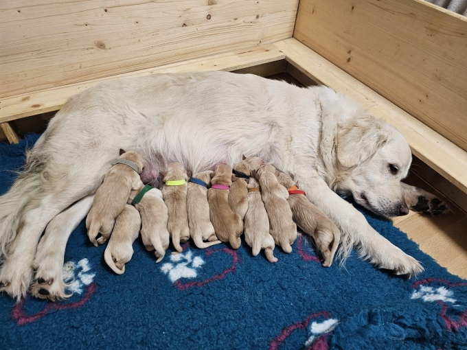 Unsere Welpen dürfen ab ca. der 4/ 5 Lebenswoche besucht und ausgesucht werden.