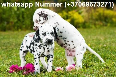 Weihnachten und kräftige Dalmatiner Welpen (2 Rüden, 2 Weibchen) suchen ein neues zuhause. Sie waren schon beim Tierarzt zur Untersuchung und wurden bereits entwurmt. Gefüttert werden sie zurzeit mit Welpen Futter von dem beim verkauf auch etwas mitgegeben wird damit die Umstellung auf das Futter ihrer Wahl reibungslos funktioniert. Bei Fragen oder wenn mehr Bilder benötigt werden Weitere Informationen unter WhatsApp Nummer (+37069673271)